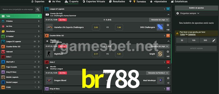 O br788 oferece uma grande seleção de opções de apostas em e-sports com probabilidades competitivas